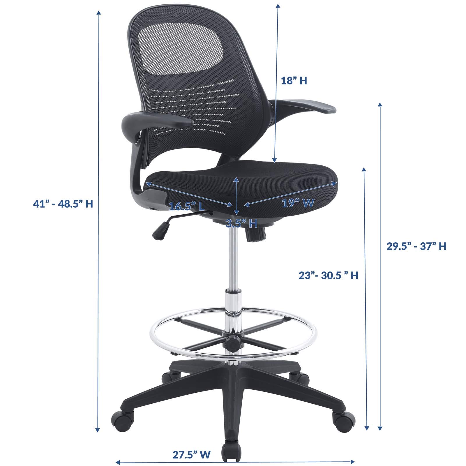 Modway Advance Drafting Stool - Reception Desk Chair - Drafting Table Chair - Flip-Up Arms in Black