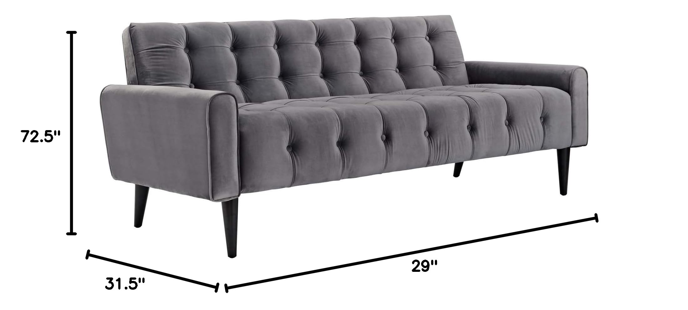 - SOFA MEASUREMENTS - Product Dimensions: 31.5" W x 72.5" L x 29" H; Backrest Dimensions: 4.5" W x 63.5" L x 9"H; Armrest Dimensions: 31.5" W x 5" L x 13" H; Legs: 9" H; Maximum Weight Capacity: 550 lbs