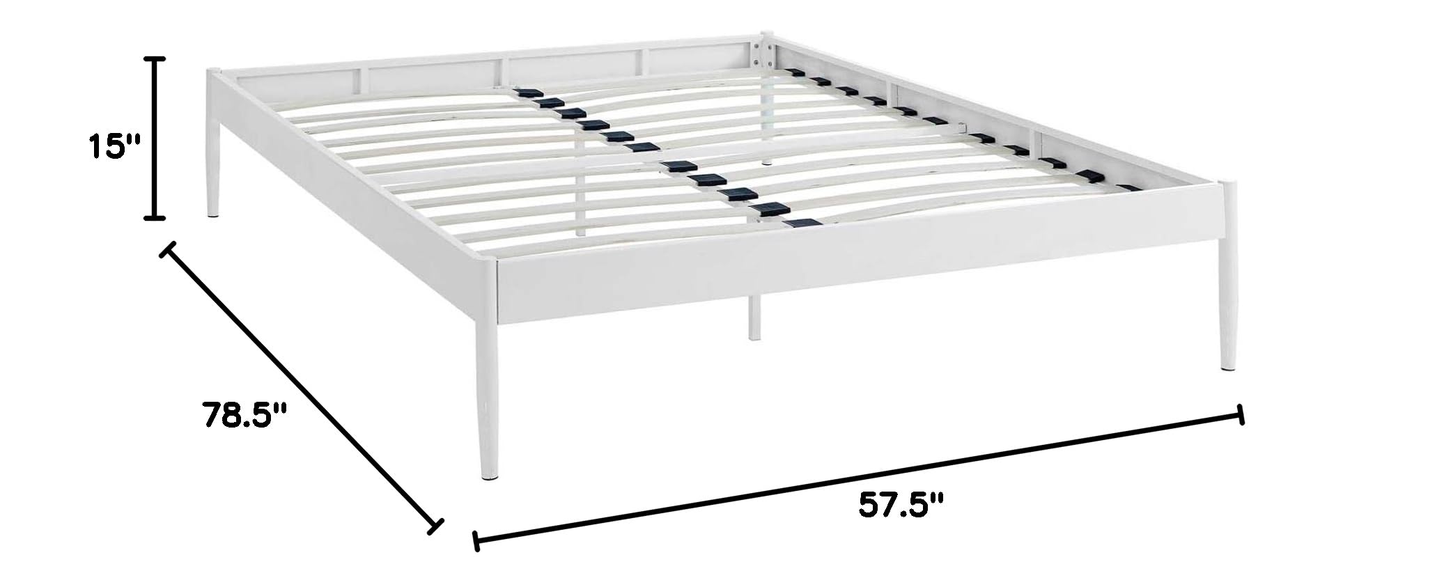 - BED FRAME MEASUREMENTS - Complement a variety of decors including modern, contemporary, and rustic with this full size bed frame. Dimensions: 78.5"L x 57.5"W x 15"H; Weight Capacity: 1300 lbs.