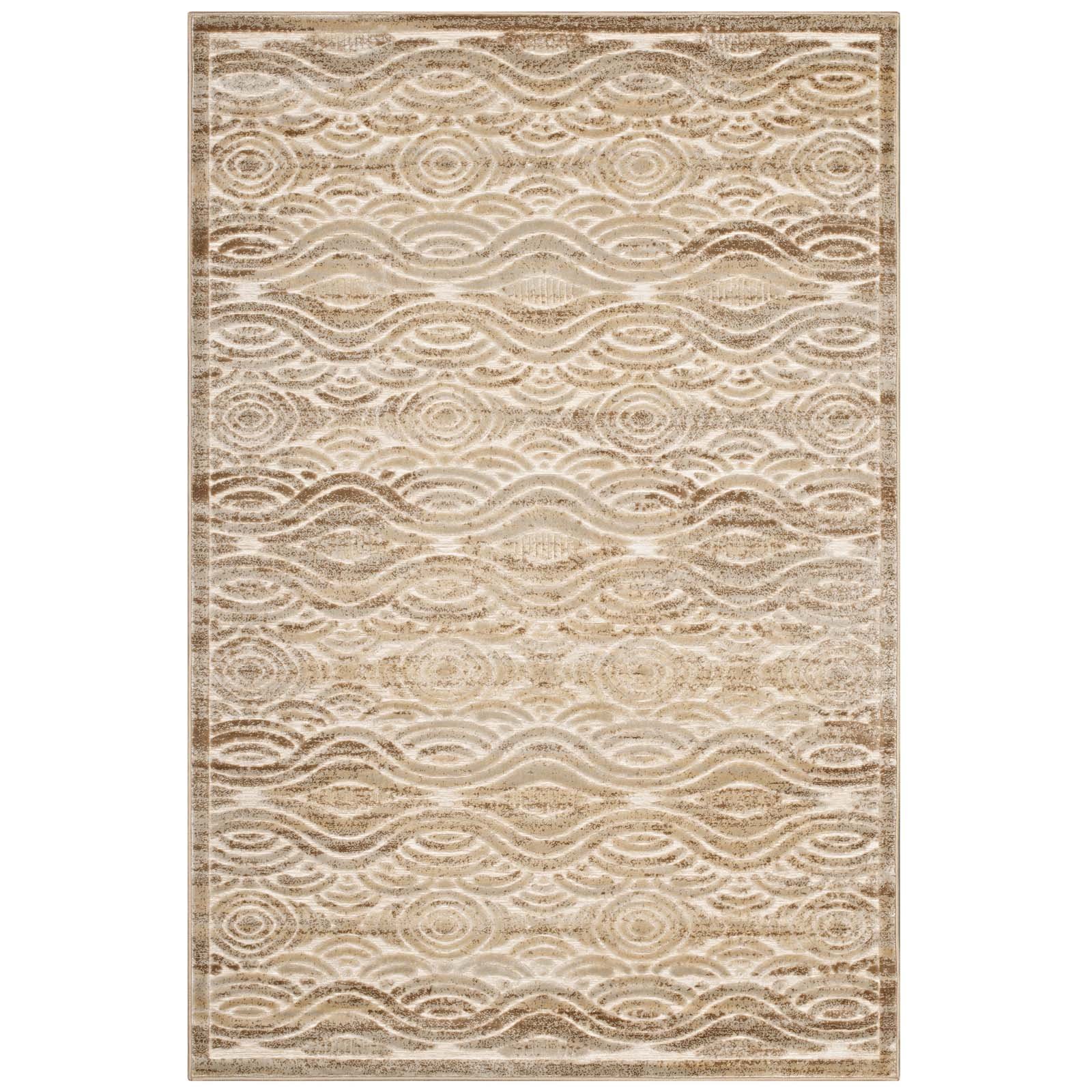 Modway Kennocha Rustic Vintage Abstract Waves 5x8 Area Rug in Tan and Cream—