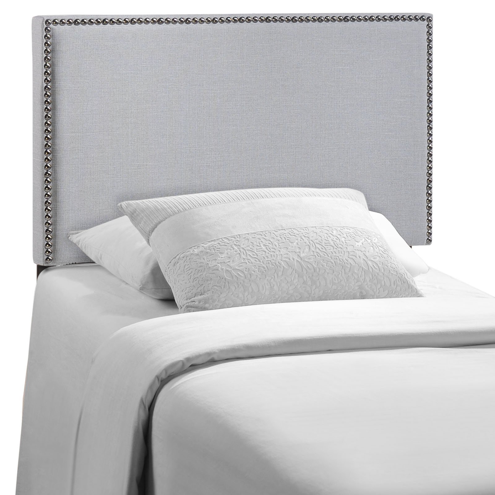 Modway Region Linen Fabric Upholstered Twin Headboard in Gray with Nailhead Trim—