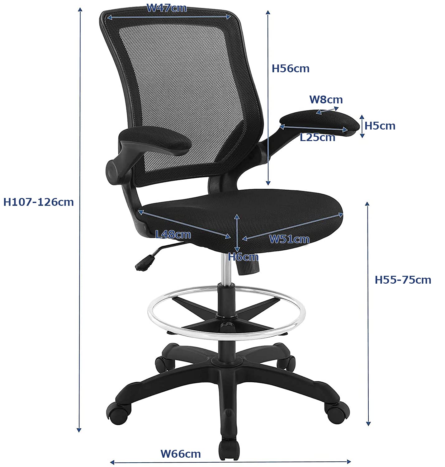 - STOOL MEASUREMENTS - Overall Product Dimensions: 26"L x 26"W x 42 - 49.5"H; Cushion Thickness: 2.5"; Weight Capacity: 331 Pounds. Seat Dimensions-19 L x 20 W x 21.5 - 29.5 H inches. Backrest Dimensions-18.5 W x 22 H inches. Armrest Dimensions- 10 L x 3 W x 2 H inches